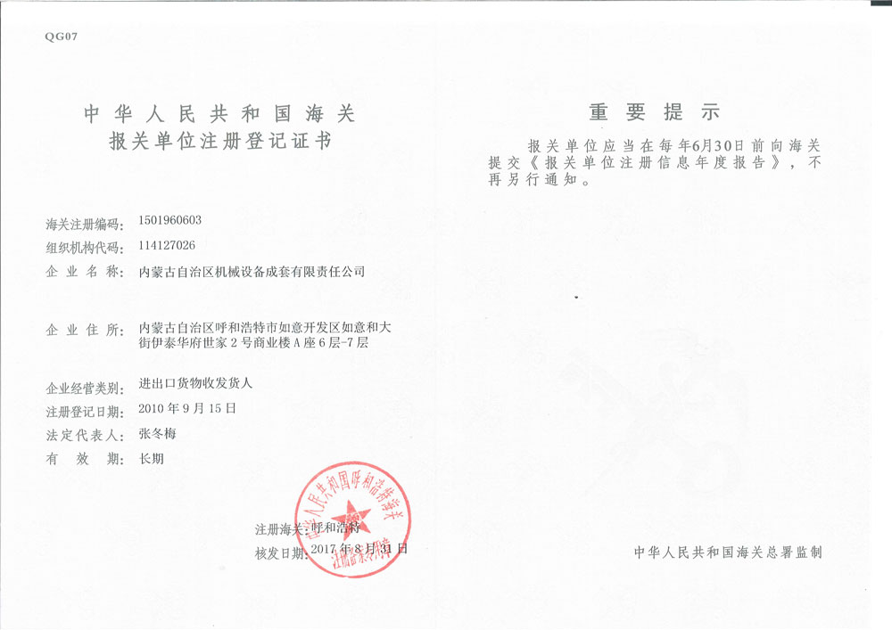 內蒙古自治區(qū)機械設備成套有限責任公司